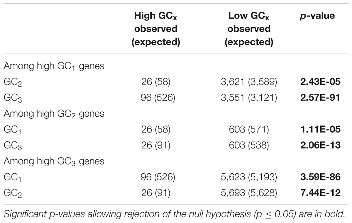 TABLE 5. Chi-square test to determine whether other GCx classes are randomly distributed within each of the high GCx classes.