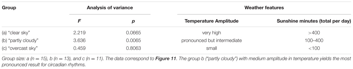 TABLE 5. Analysis of variance (ANOVA) results for the circadian rhythm analysis of form change as a function of three characteristic weather groups.
