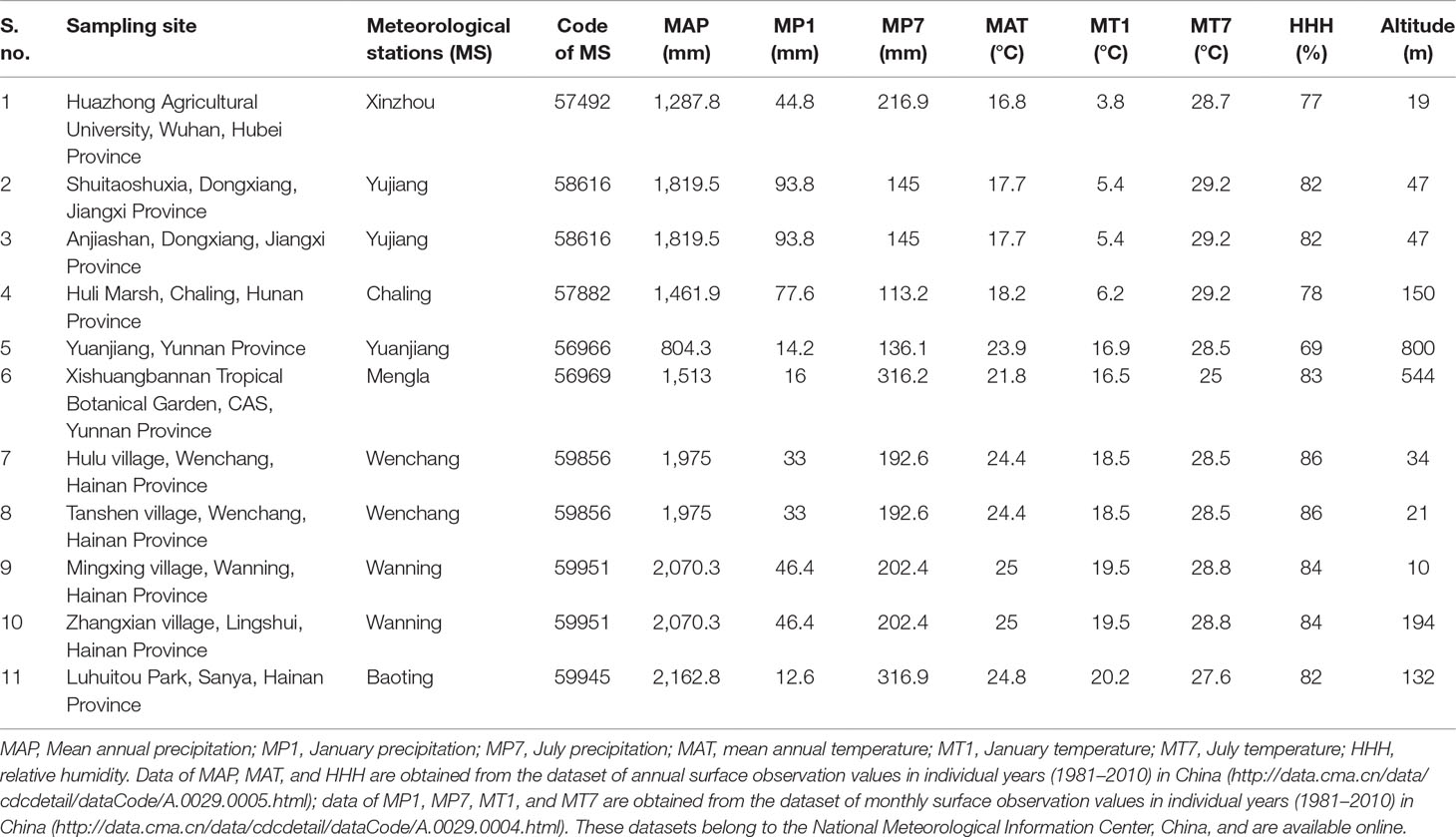 Table 3 Summary of the environmental variables in the 11 sampling sites used for correlation analysis.
