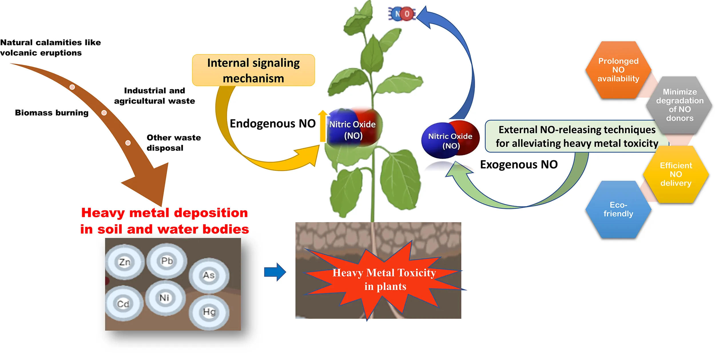 Heavy metal toxicity reduces plant growth and productivity. Since traditionally used NO donors do not provide a sustained NO-release, therefore heavy metal toxicity can be mitigated by novel NO-delivery techniques.