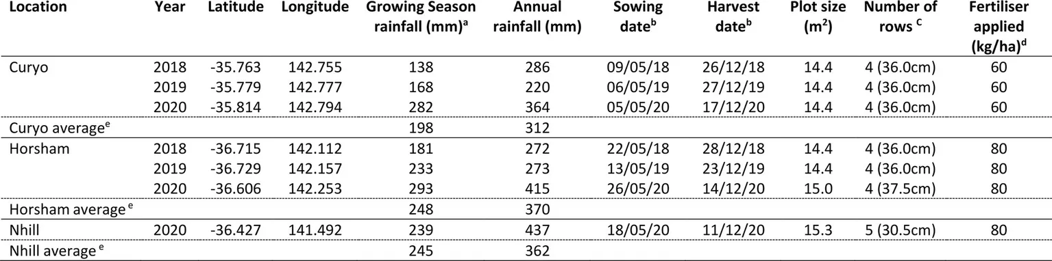 Rainfall data were obtained from the nearest meteorological stations at Curyo (Marbeled 77,028), Horsham (Horsham Aerodrome 79,100), and Nhill (Nhill Aerodrome 78,031; Queensland Government, 2022).