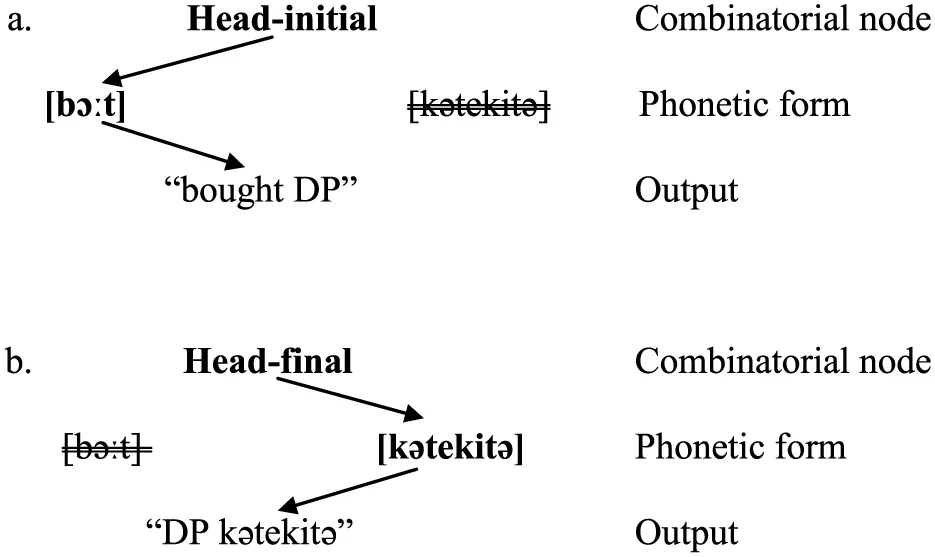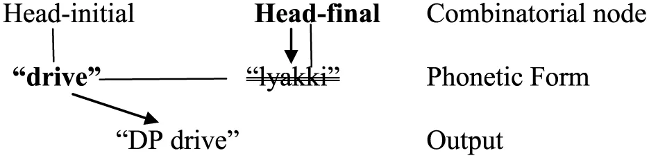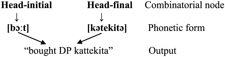 In bilingual code-switching which involves language-pairs with contrasting head-complement orders (i.e., head-initial vs. head-final), a head may be lexicalized from both languages with its complement sandwiched in the middle. These so-called “portmanteau” sentences (Nishimura, 1985, 1986; Sankoff et al., 1990, etc.) have been attested for decades, but they had never received a systematic, formal analysis in terms of current syntactic theory before a few recent attempts (Hicks, 2010, 2012). Notwithstanding this lack of attention, these structures are in fact highly relevant to theories of linearization and phrase structure. More specifically, they challenge binary-branching (Kayne, 1994, 2004, 2005) as well as the Antisymmetry hypothesis (ibid.). Not explained by current grammatical models of code-switching, including the Equivalence Constraint (Poplack, 1980), the Matrix Language Frame Model (Myers-Scotton, 1993, 2002, etc.), and the Bilingual Speech Model (Muysken, 2000, 2013), the portmanteau construction indeed looks uncommon or abnormal, defying any systematic account. However, the recurrence of these structures in various datasets and constraints on them do call for an explanation. This paper suggests an account which lies with syntax and also with the psycholinguistics of bilingualism. Assuming that linearization is a process at the Sensori-Motor (SM) interface (Chomsky, 2005, 2013), this paper sees that word order is not fixed in a syntactic tree but it is set in the production process, and much information of word order rests in the processor, for instance, outputting a head before its complement (i.e., head-initial word order) or the reverse (i.e., head-final word order). As for the portmanteau construction, it is the output of bilingual speakers co-activating two sets of head-complement orders which summon the phonetic forms of the same word in both languages. Under this proposal, the underlying structure of a portmanteau construction is as simple as an XP in which a head X merges with its complement YP and projects an XP (i.e., X YP → [XP X YP]).