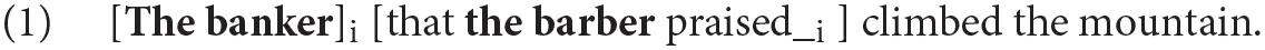 A necessary condition for comprehending correctly an Object Relative clause (OR) is to interpret the head of this construction [“the banker” in (1)] as the direct object of the predicate within the relative clause (“praised”):