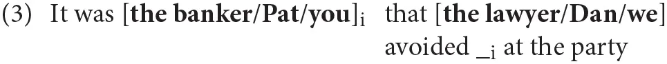 | c”. | It was you | that we | avoided _ | at the party | [P1-P2] |