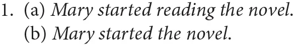 One linguistic phenomenon involving information not explicitly expressed is complement coercion, which involves repairing a semantic type mismatch between an event-selecting verb and an entity-denoting complement (Pustejovsky, 1991, 1995; Jackendoff, 1997). This phenomenon is found in sentences such as (1) below. The verb start appears to be an event-selecting verb, which normally takes an eventive complement, as started reading the novel in (1a). But this verb can also co-occur with a nominal complement denoting an entity, as started the novel in (1b). What is noticeable in (1b) is that there is a type clash between the verb and its nominal complement, which does not overtly indicate what activity Mary started doing. To remedy the clash, the noun complement is supposed to undergo a type shift from an entity to an event (i.e., changing the meaning of the novel to something like “the process of reading the novel”) so that it meets the selectional restriction of the verb.