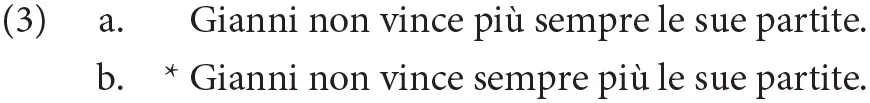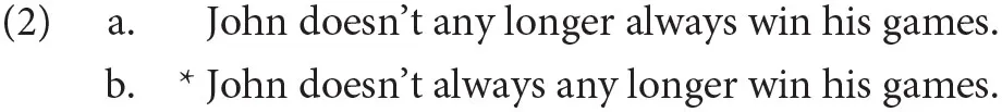 Let us now see some concrete examples, starting with English. Suppose we have a sentence with two adverbs: any longer and always, and they both appear before the verb. What we find is that the adverb any longer must precede the adverb always7: