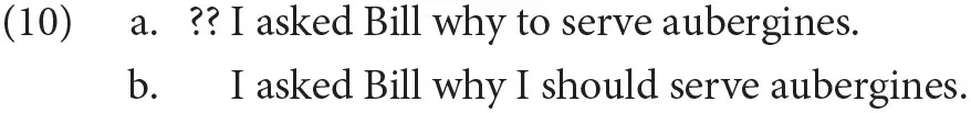 Once again, there is a great deal here that has to be explained via reference to functional-adaptive methods under the cultural approach. For example, there is no functional advantage to banning a certain kind of complementizer from infinitives—indeed, it seems to be innocuous18. But due to reasons of space, I can only discuss one problem in detail. Take, for instance, the difference in acceptability between normal wh-infinitives and why-infinitives in English: