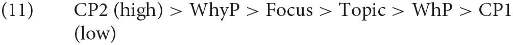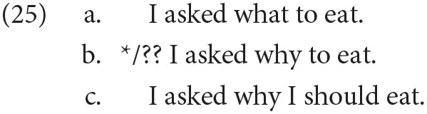 This is despite the fact that English allows wh-infinitives, such as I know what to eat, indicating that “why” and other wh-elements need to be ordered differently in Rizzi's hierarchy. I will conclude with the following hierarchy of ordered functional projections, following Shlonsky and Soare (2011)14: