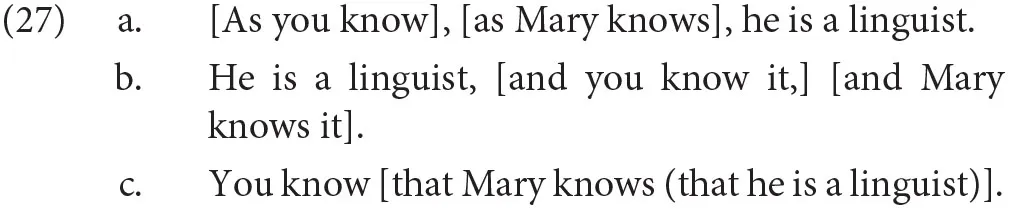 WurmbrandS.LohningerM. (2019). “An implicational universal in complementation: theoretical insights and empirical progress,” in Propositional Arguments in Cross-Linguistic Research: Theoretical and Empirical Issues, eds J. M. Hartmann, and A. Wollstein (Mouton de Gruyter) Gunter Narr Verlag, Tübingen.