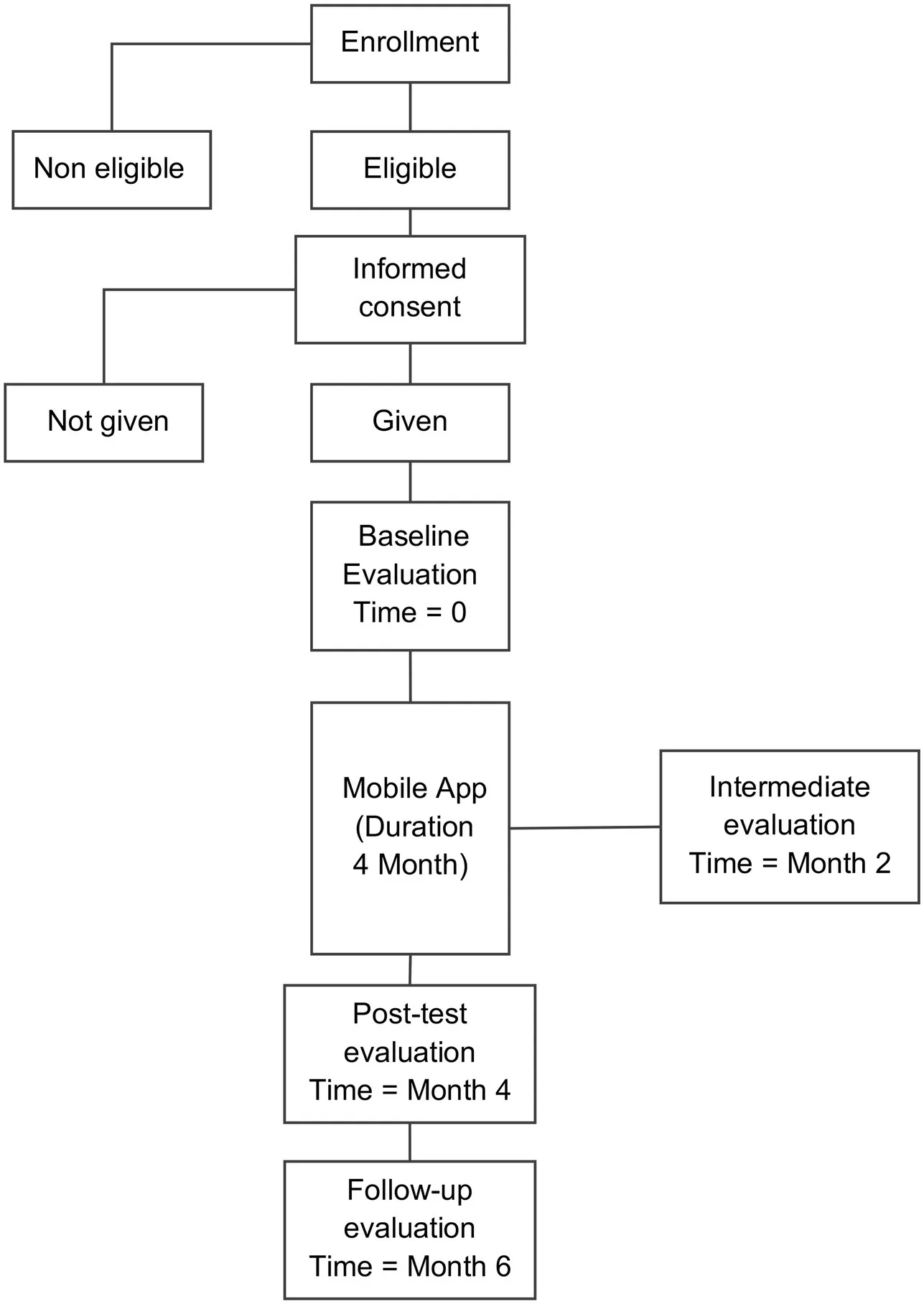 One of the main issues regarding self-management interventions delivered by mobile apps is the risk of sub-optimal adherence, i.e., a minimal or less frequent use of the app. Such utilization of the application could limit the effectiveness of the intervention. To enhance participation and a regular use of our app, users will be guided in the compilation of the diary by an easy-to-follow step-by-step process and a reminder will be sent to them through mobile notification and email. Moreover, during the phase of data analysis, sub-optimal adherence will be controlled by including the frequency of use of the app (measured with the number of weekly accesses and mean duration of accesses) as a covariate in the ANCOVA model.
