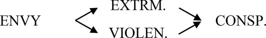 An examination of envy’s functions (see, Hill and Buss, 2008; Cohen-Charash and Larson, 2016; Sznycer et al., 2017) reveals striking characteristics that may contribute to explaining essential and conspicuous features of the radicalization process: the motivation to monitor social differentials, the identification of the source of postulated welfare costs, the impulse to eliminate or depower competitors, and the derivation of pleasure at the misfortune of the envied.2 Indeed, several features of envy-motivated behaviors and attitudes are ostensibly observed in extreme, radicalized or conspiracy theory comportments: