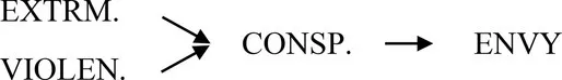 We examine the relationship between dispositional envy, central aspects of radicalization (i.e., extremist attitude and endorsement of violence), and conspiracy mentality. We make the following predictions: