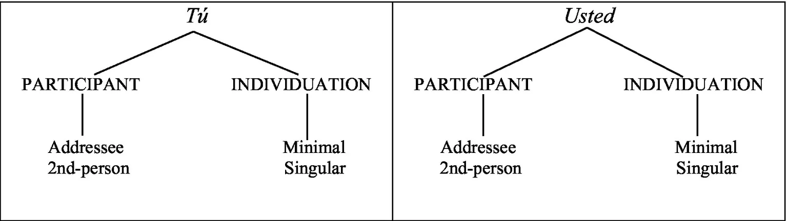 (1) Feature geometry of the T/U paradigm in Spanish.