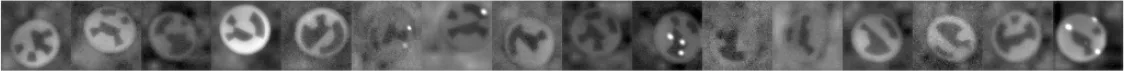 We train generator and discriminator as in the normal GAN setting. We use 2.4 M unlabeled images of tags to train the RenderGAN. We use Adam (Kingma and Ba, 2014) as an optimizer with a starting learning rate of 0.0002, which we reduce in epoch 200, 250, and 300 by a factor of 0.25. In Figure 5B the training loss of the GAN is shown. The GAN does not converge to the point where the discriminator can no longer separate generated from real samples. There is also a difference between how real and fake tags are scored by the discriminator after training (see Figure 5A). The augmentation might restrict the generator too much such that it cannot model certain properties. Nevertheless, it is hard for a human to distinguish the generated from real images. In some cases, the generator creates unrealistic high-frequencies artifacts. The discriminator unfailingly assigns a low score to theses images. We can therefore discard them for the training of the supervised algorithm. More generated images are shown in Appendix A (Supplementary Material). In Figure 6, we show random points in the latent space, while fixing the tag parameters. The generator indeed learned to model the various lighting conditions, noise intensities, and backgrounds.
