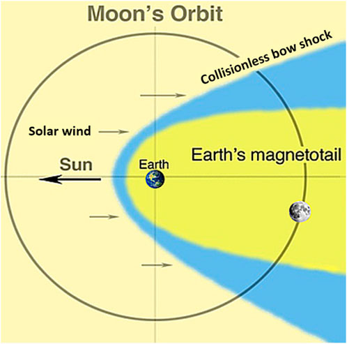 FIGURE 1. Moon’s orbit with respect to the Earth’s magnetosphere. Earth’s and Moon’s sizes are not on scale. (Adapted from: Tim Stubbs/University of Maryland/GSFC).