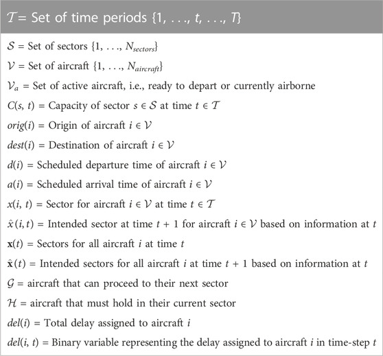 In each time-step, each aircraft i occupies a sector x(i, t), which we call its current sector. Each aircraft i also has a desired next sector