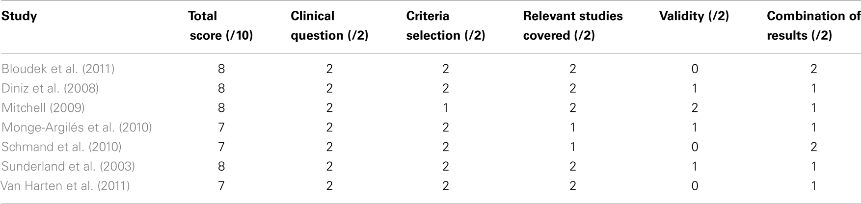 Table A4. Methodological quality of selected systematic reviews with meta-analyses according to Oxman’s Scale.