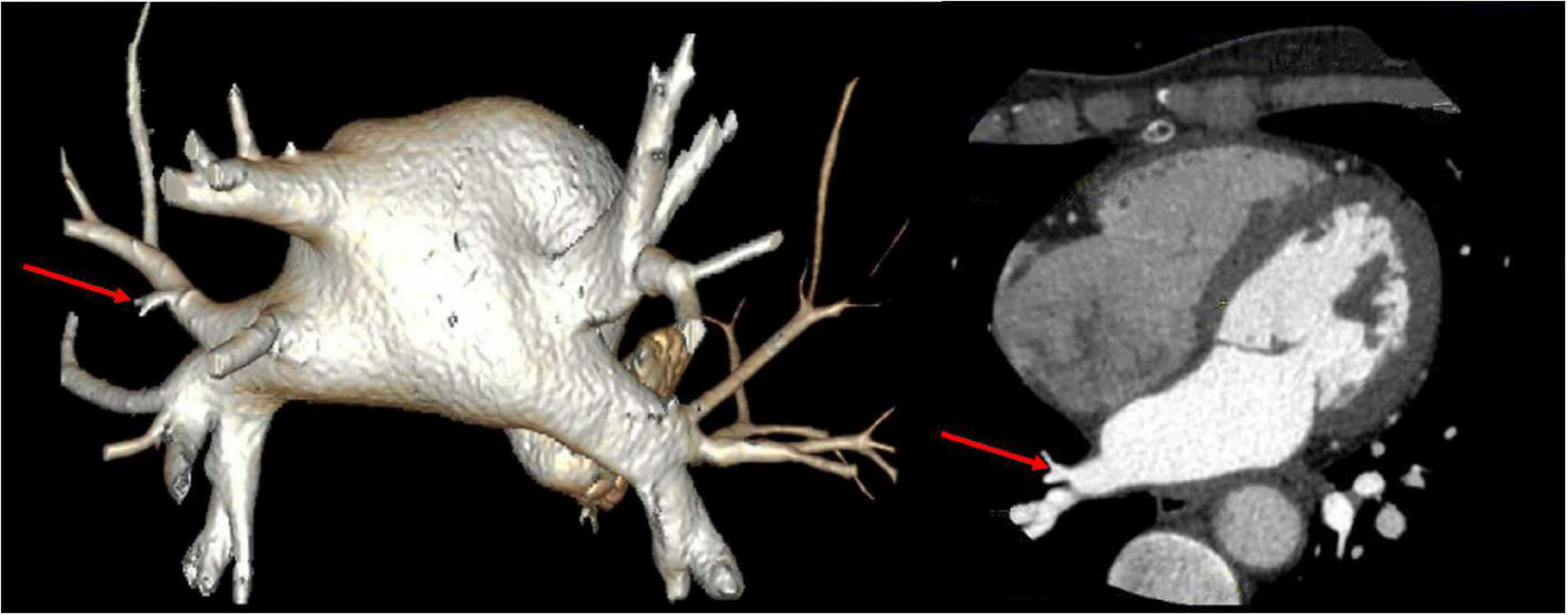 CT angiography (CTA) of left atria-pulmonary vein showed the middle branch of the right pulmonary vein was variable.