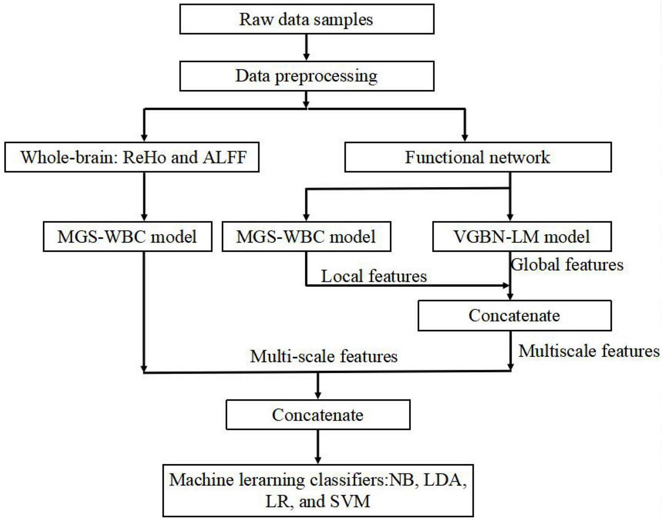 In the results, the features generated by the MGS-WBC model and VGBN-LM model yield better performance than the traditional method in the aMCI detection process. The framework of our aMCI diagnosis system is illustrated in Figure 1.