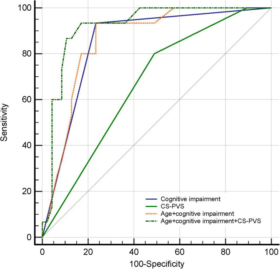 The binary logistic regression analyses were used to investigate the association between PVS and delirium. Given the limited sample size, only covariates with P < 0.05 identified in univariate analysis were included in the multivariate analysis. The following models were generated sequentially: (1) unadjusted; (2) adjusted only for age (model 1); (3) adjusted for age and cognitive impairment (model 2); and (4) adjusted for age, cognitive impairment, smoking, and CCI (model 3). To mitigate the potential bias induced by changes in PVS over time, a similar analysis was performed after excluding patients who underwent MRI more than 6 months before admission.