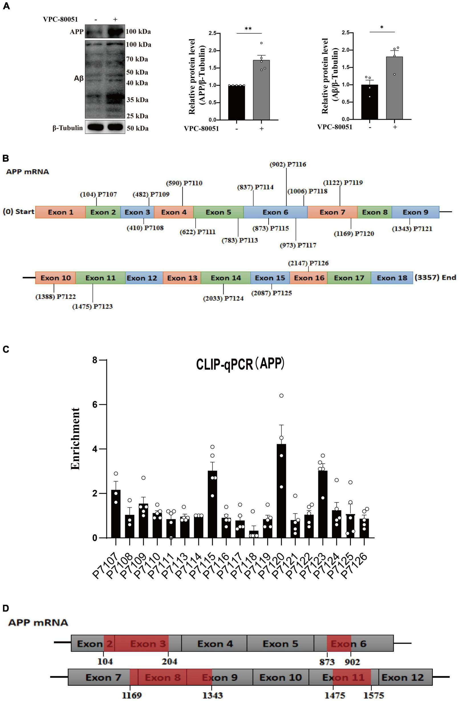 The experiment was performed by IEMed Guangzhou Biomedical Technology Co, Ltd. Crosslinking-immunprecipitatio assays were performed by using the CLIP Kit (IEMed, K319) along with the hnRNP A1 antibody (#8443S, Cell Signaling Technology). HT22 cells were irradiated with 254 nm UV lamp at a dose of 0.15 J/cm2 for cross-linking for 1 min. PBS was added into the culture plate. Cells were scraped off with a cell scraper and transferred to a centrifuge tube, centrifuged at 1000rpm for 5 min at 4°C, and supernatant was removed. 2 mL of cell lysis buffer and 20 μL of protease inhibitor were added to cell precipitation. IP and IgG groups were incubated on a vertical mixer with shaking at room temperature for 1 h. The beads were collected on a magnetic rack. 500 uL of CLIP wash buffer was added and washed with shaking at room temperature for 3 min, and the beads were collected on a magnetic rack. Input group, IP group and IgG group were added with 50 μL CLIP washing buffer and 1 μL RNase T1 respectively. Each group was incubated at 37°C for 1 h. Beads of IP group and IgG group were collected on the magnetic rack, and then mixed upside down with 200 μL CLIP washing buffer. Beads were collected on the magnetic rack and repeated twice. The Input group, IP group and IgG group were added with 50 μL PK buffer and 10 μL protease K for digestion at 55°C for 1 h. 120 μl nucleic acid BF C and 10 μL magnetic beads were added to each tube, incubated at room temperature for 20 min, and the magnetic beads were collected on the magnetic rack. Each group was added with 60 μL nucleic acid BF C, which was collected on the magnetic rack immediately and repeated twice. After drying at room temperature for about 10 min, 20 μL RNase-free water was added and the supernatant RNA was collected on the magnetic rack after 3 min of elution at room temperature. Finally, qPCR was performed to detect the enrichment. The synthesized primers are listed in Table 2.