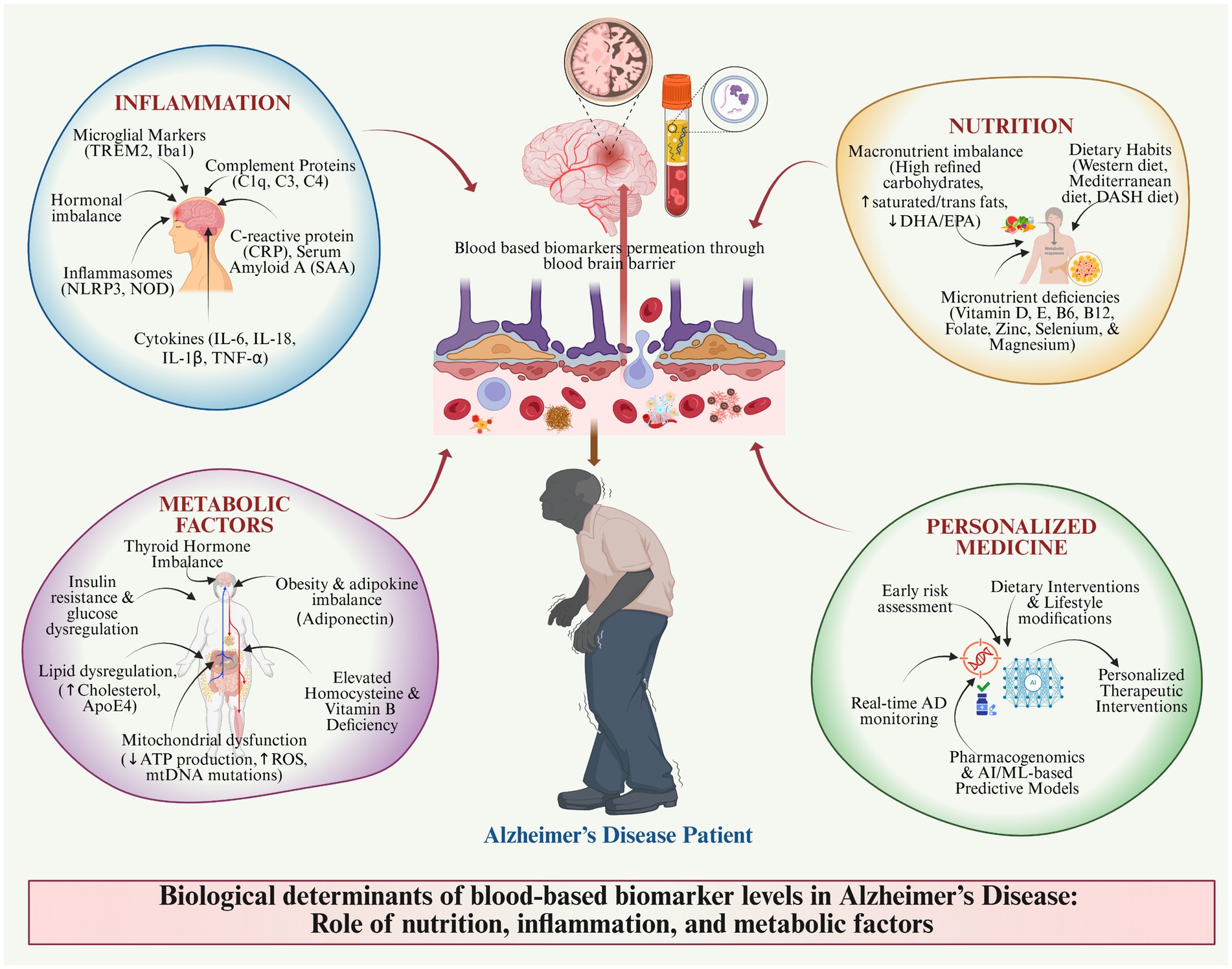 Keywords: Alzheimer’s disease, blood-based biomarkers, nutritional factors, inflammation, metabolism, biomarker variability, personalized medicine
