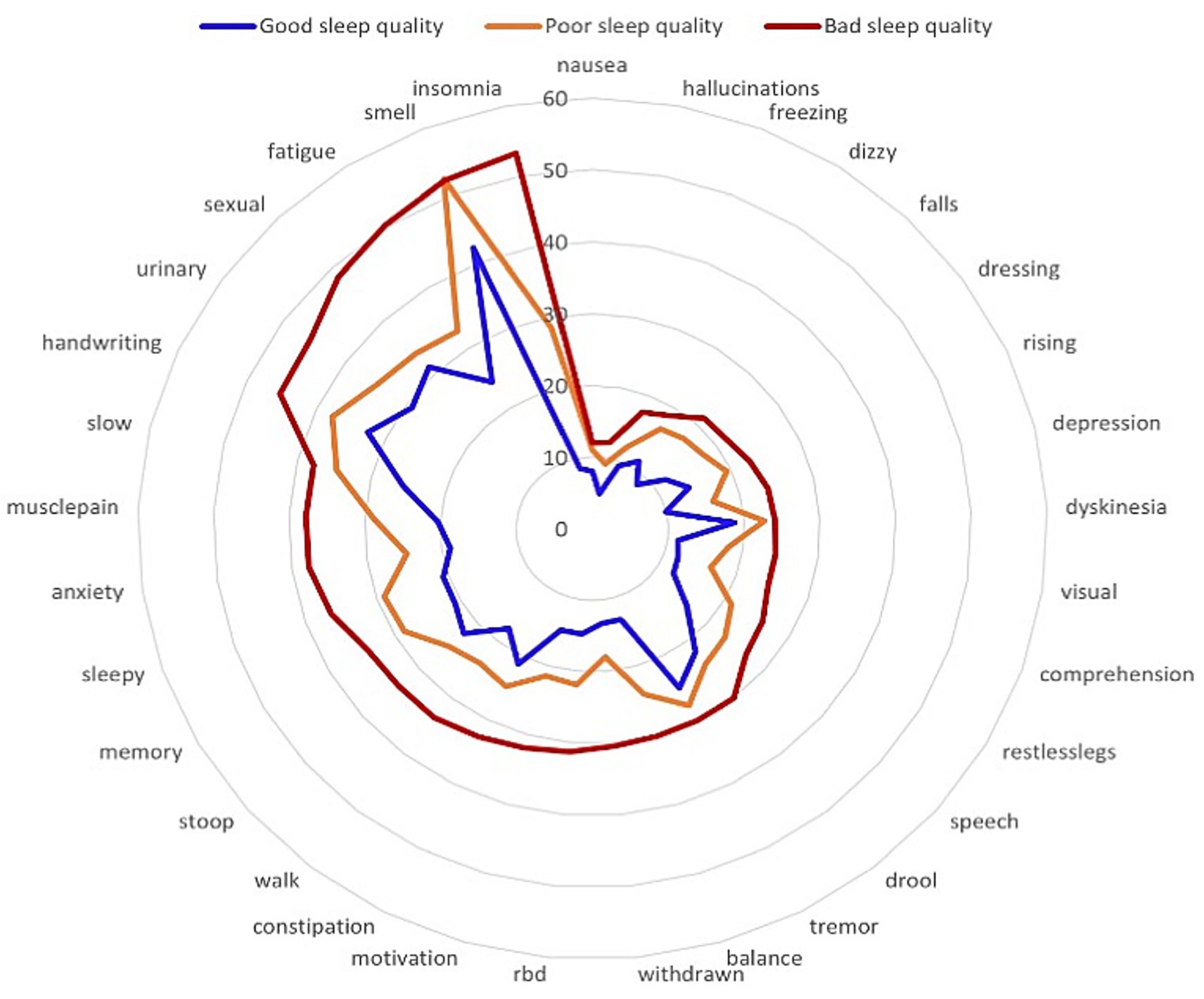 Yi, Q., Yu-Peng, C., Jiang-Ting, L., Jing-Yi, L., Qi-Xiong, Q., Dan-Lei, W., et al. (2022). Worse sleep quality aggravates the motor and non-motor symptoms in Parkinson’s disease. Front. Aging Neurosci. 14:887094. doi: 10.3389/fnagi.2022.887094