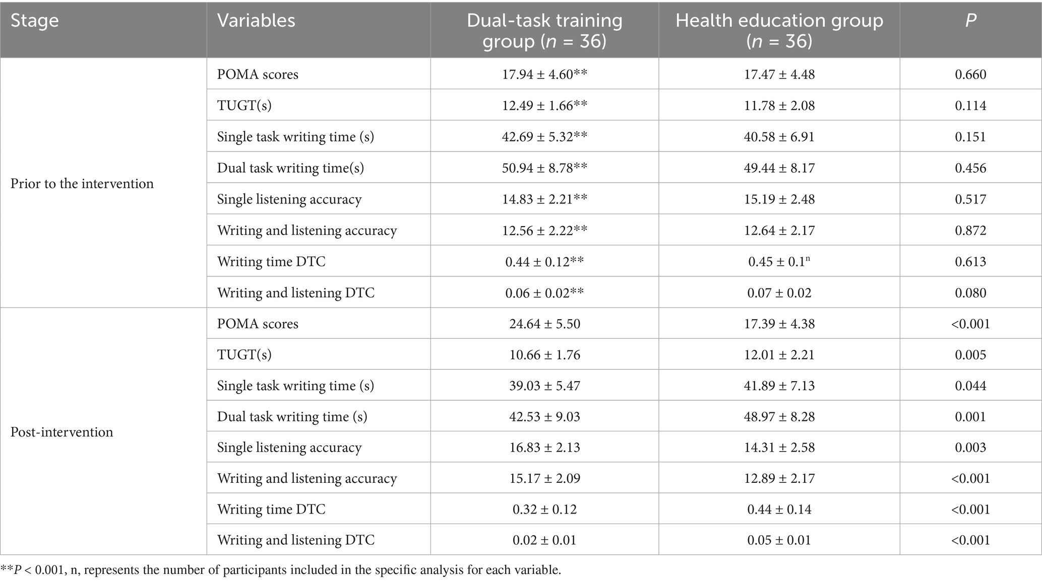 Table 3. Comparison of physical function and dual-task indicators between the two groups before and after intervention.