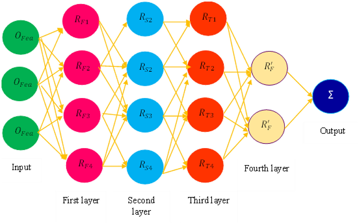 Algorithm 3 explains the PD classification based on four-layer rules using the MFNN algorithm. Let us assume μi membership function and OFeaturei input to the node.