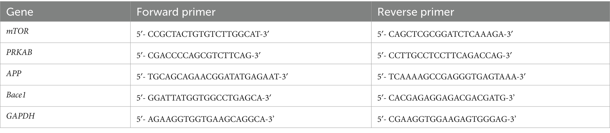 Total RNA was extracted from brain tissues using Trizol-C reagent (SRL, India) and analysed using a ND-1000 Spectrophotometer (NanoDrop), followed by reverse-transcription into cDNA using Verso cDNA Synthesis Kit (Thermo Fisher Scientific Inc., US). Quantitative RT-PCR was performed using the iTaq Universal SYBR Green Supermix (Bio-Rad Laboratories, United States) on a CFX connect Real-Time PCR system (Bio-Rad Laboratories, United States), as per the protocol provided by the manufacturer. The primers were designed using NCBI primer blast1 (Table 3). The amplification was performed with iTaq Universal SYBR Green Supermix with 0.4 μL of each forward and reverse primers for the target of interest and I μL of cDNA as template, using the following conditions: 95 °C for 20–30 s (polymerase activation), 35 to 40 cycles of 95 °C for 15 s (denaturation), and 60 °C for 30 s (annealing). After each cycle run, a melting curve analysis was performed, using the following conditions: 65 °C to 95 °C with 5 °C increment for 2–5 s per step. Raw Ct values were determined to analyse the relative fold change of target genes.