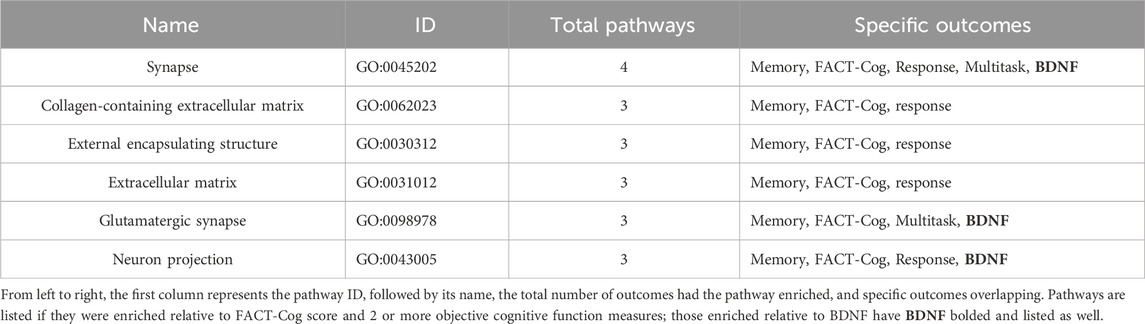 Table 3. Overlapping Enriched Pathways Relative to Cognitive Function Outcomes and Circulating Brain Derived Neurotrophic Factor.