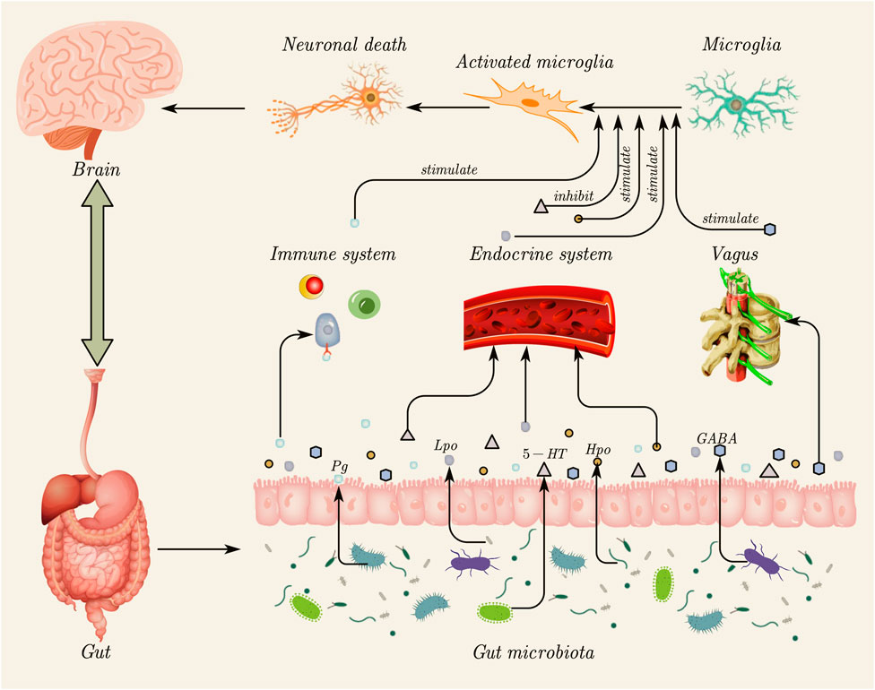 3.2 Gut microbiota and its derivatives—endocrine system—microglia
