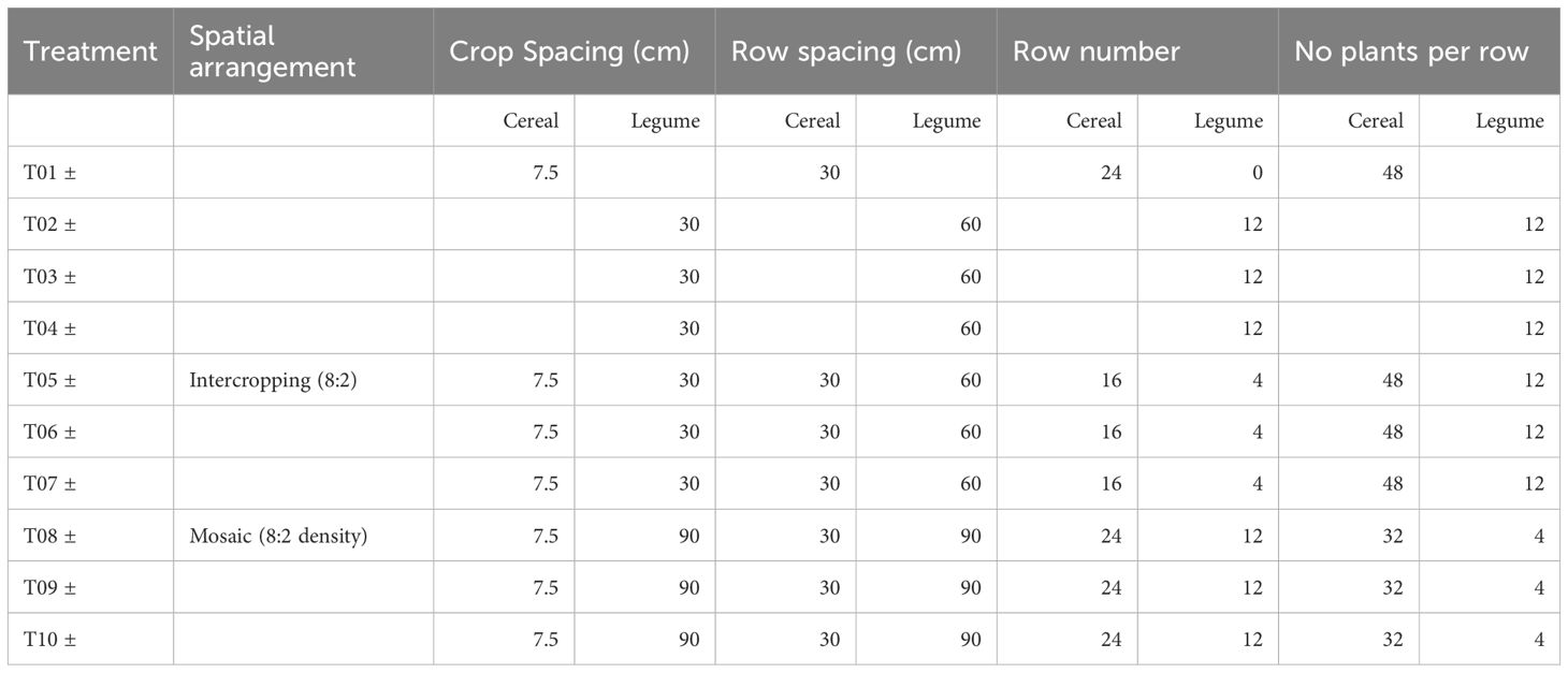 Table 1. Layout of experimental plots, spatial arrangements, and plant densities for different crop mixtures.