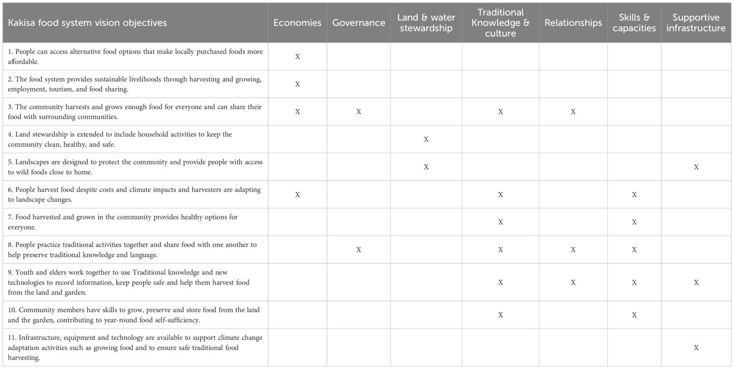 Table 1. Overview of community-defined objectives for the Ka’a’gee Tu First Nation food system vision, categorized by the community agroecological values framework dimensions.