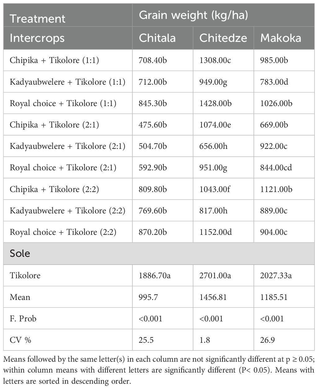 Table 9. Grain weight (kg/ha) of soybean intercropped with sweet potato across locations during the 2023/2024 growing season.