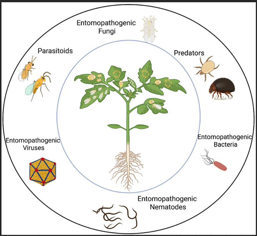 The new generation of IPM must adopt a multidisciplinary approach to tackle B. tabaci control. Future research should focus on evolutionary biology and population genetics to monitor resistance development and optimize natural enemy deployment. Advancements in biotechnology, precision application technologies, and expanding biological control trials to diverse cropping systems and landscapes will enhance biocontrol applicability. Strengthening extension services, policy support, and farmer education is crucial for promoting the widespread adoption of biocontrol tools, while reducing dependency on broad-spectrum chemical insecticides, will help to pave the way for more sustainable and resilient agricultural systems. Realizing the full potential of biocontrol agents will depend on sustained investment in research, capacity building, public-private collaboration, and policy support. With coordinated global and local actions, natural enemies can become the cornerstone of climate-smart B. tabaci management, contributing to food security, environmental conservation, and resilient agroecosystems.