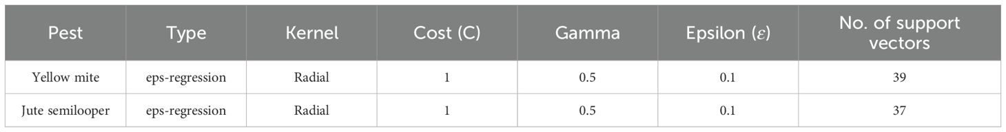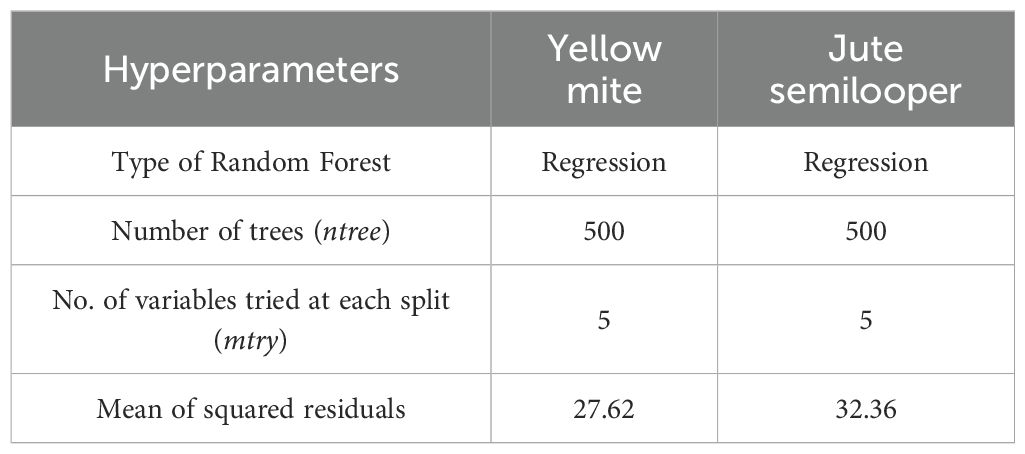 Table 10. Hyperparameters of the Random Forest model for both yellow mite and jute semilooper incidences.