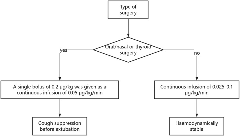 An intraoperative infusion of 0.025–0.05 μg/kg/min can meet postoperative analgesic needs, and can be increased to 0.1 μg/kg/min if deeper sedation is required.