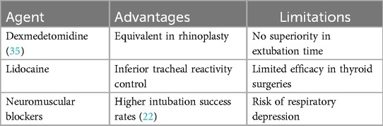 Although it can improve blood pressure fluctuations (SBP reduction of 30–45 mmHg), there is no statistically significant difference in cough suppression (24% vs. 28%, P = 0.72), suggesting its advantages lie more in hemodynamic control rather than airway reflex suppression (1).