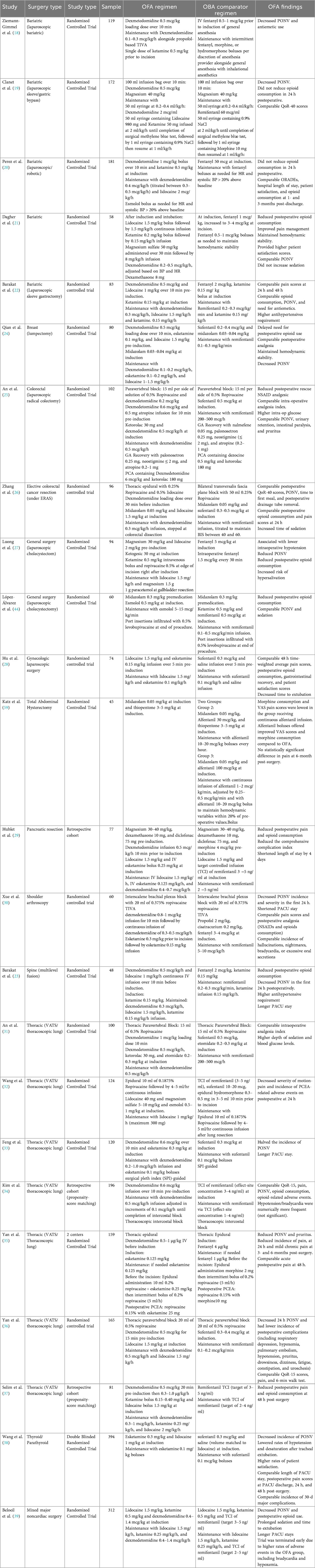 Table 2. Study characteristics and key findings of recent trials comparing opioid-free (OFA) and opioid-based anesthesia (OBA) regimens.