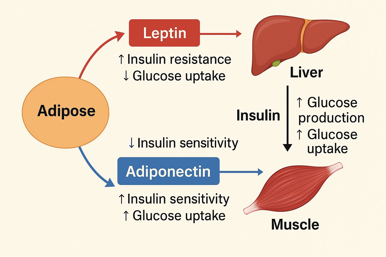 Important fat metabolism regulators in the context of obesity, adipokines are bioactive chemicals secreted by adipose tissue that control several metabolic processes. Among these peptides, leptin and adiponectin influence insulin sensitivity, inflammation, energy expenditure, and appetite control (Arner, 2005; Blüher and Schwarz, 2014; Blüher, 2012; Park and Shimokawa, 2024; Gupta et al., 2024). Dysregulation of adipokine secretion in obese people relates to metabolic disorders, such insulin resistance and type 2 diabetes, thereby emphasizing their clinical value (Abed et al., 2023; Armstrong et al., 2011; Andrade-Oliveira et al., 2015).