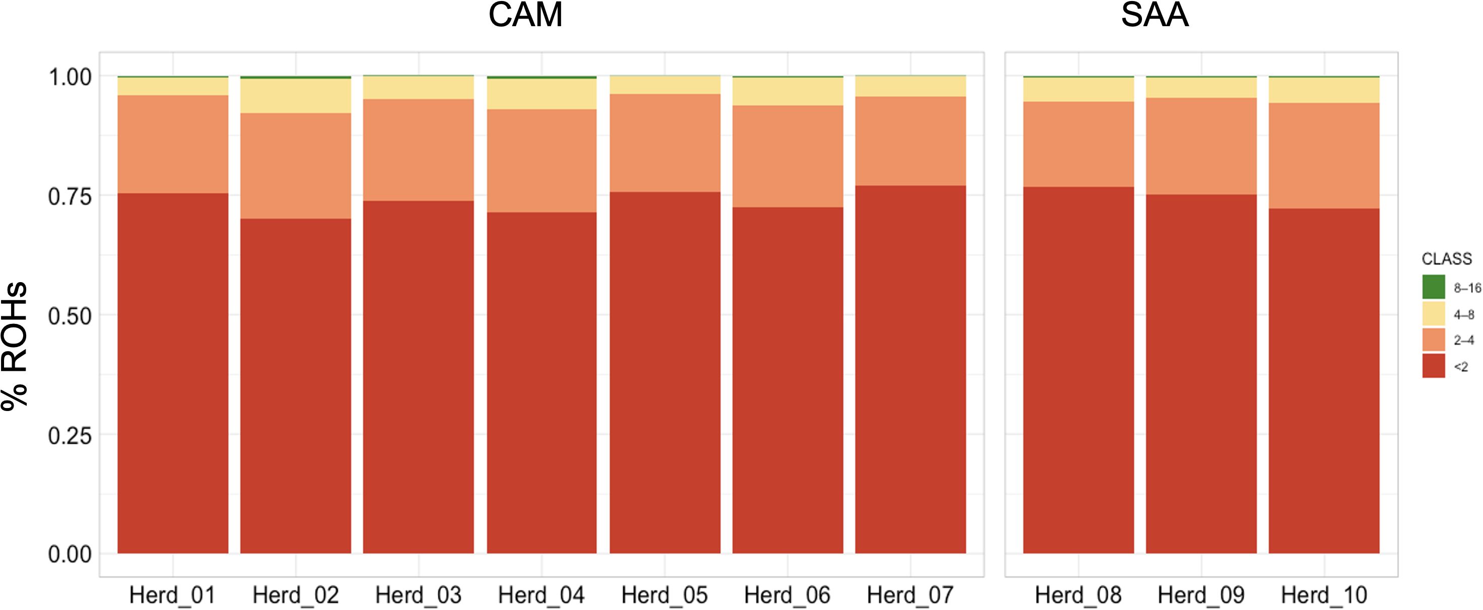 Table 3. Descriptive statistics for the ROH identified according to each Herd, and for overall CAM and SAA.