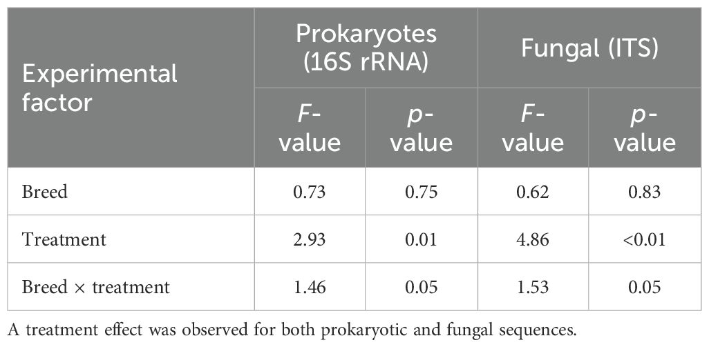 Table 1. Bray–Curtis-based permutational analysis of variance (PERMANOVA) for rumen microbiome sequence data.