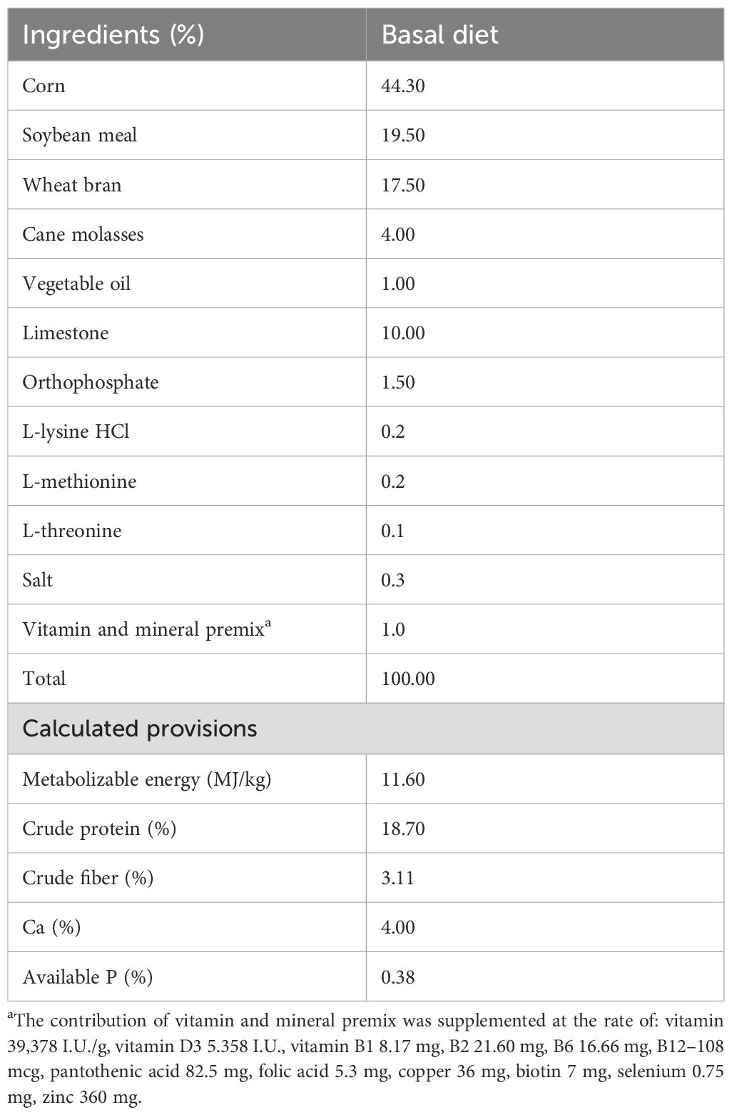 As an alternative to the use of antibiotics in poultry production, various compounds, mainly of natural origin, have been evaluated. The popularity of the use of feed additives in the feeding of production animals has increased in recent decades, especially in the production of animal-derived foods intended for consumers who prefer organic, cruelty-free, and safe foods. Accordingly, nutritional supplements such as prebiotics, probiotics, herbal extracts, and others have been investigated for their potential to enhance growth performance and health in livestock and poultry (Lao et al., 2020; Bąkowski and Kiczorowska, 2021; Oluwafemi et al., 2020; Al-Baadani et al., 2021) and are able to replace the use of antibiotics as a feed additive (Balcón-Pacheco et al., 2023; Franco-Robles and Hernández-Granados, 2024).