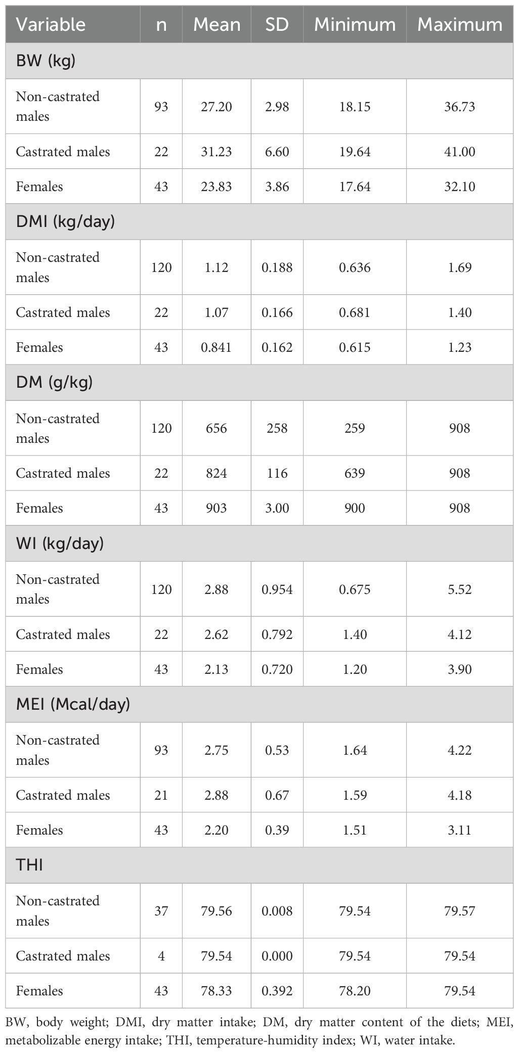 Table 2. Descriptive statistics of the data used to develop models to predict the water intake of hair sheep.
