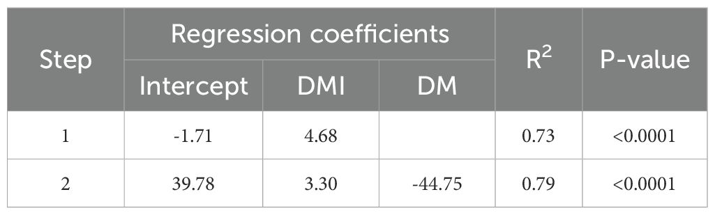 Table 3. Results of stepwise analyses, including the coefficient of determination (R2), and regression coefficients.