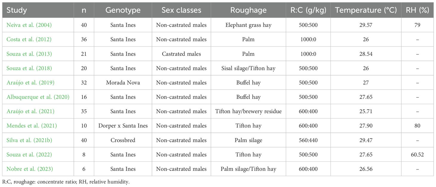 Table 1. Description of studies used to predict water intake in hair sheep raised in tropical regions.