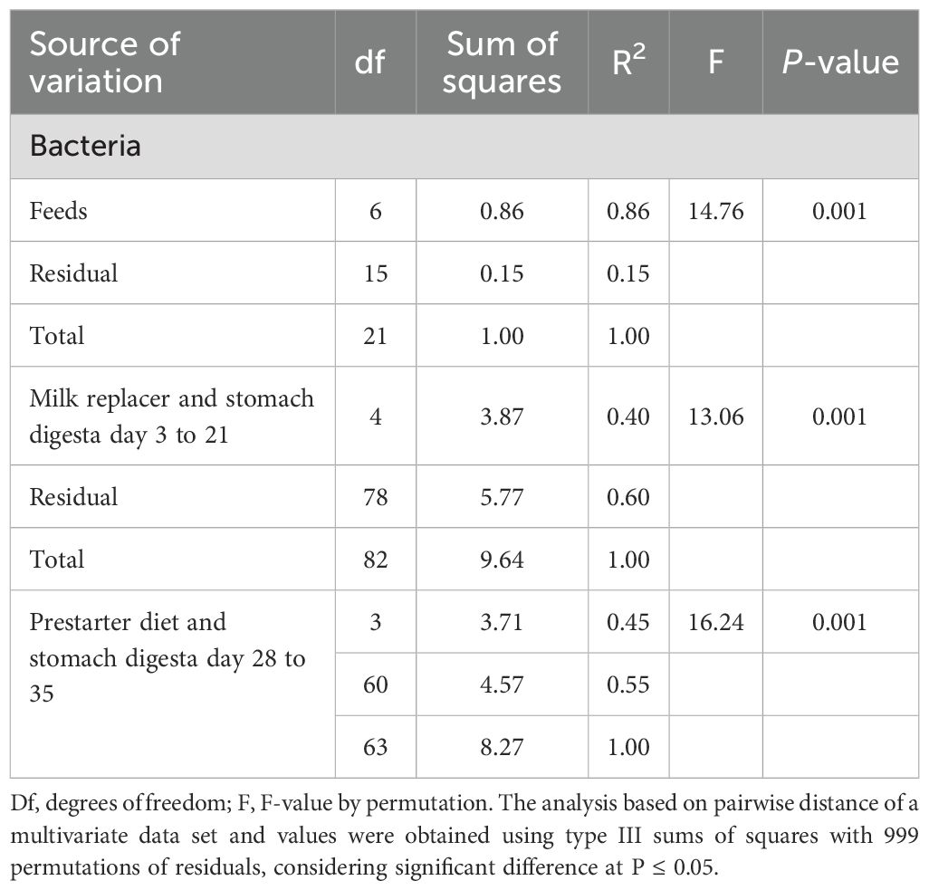 Table 3. Permutational multivariate analysis of variance (PERMANOVA) results for bacterial communities in the feed.