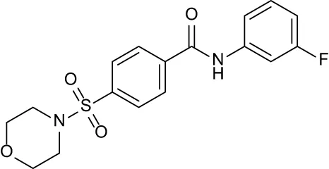 Hit validation was then carried out for select hits against OppA2 using the 10-mM compound stock solutions in DMSO from the screening library according to the screening conditions above, except that each compound was tested in triplicate. Additional negative controls containing 50 μM compound, 1X dye, and buffer were also included. Compounds that maintained hit status were purchased as dry powders and then re-evaluated in triplicate from freshly prepared 10 mM stock solutions in DMSO. Confirmed hits were counter-screened in triplicate against OppA1, OppA3, OppA4, and OppA5 using the conditions determined above. The data was processed in the Protein Thermal Shift™ Software version 1.3 for Tm and ΔTm calculations. The hit threshold for each protein was defined as described above.