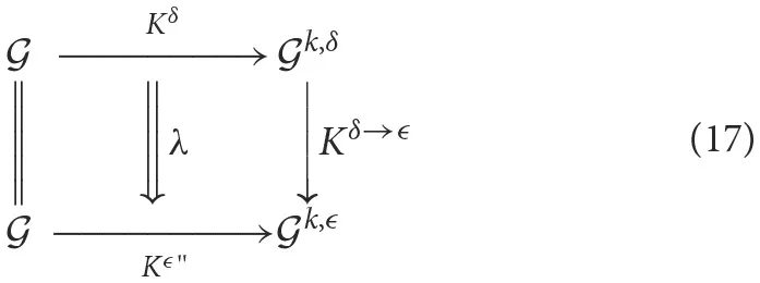 And the comparison between the disease progresses will be thus an arrow between and , that is, an arrow between arrows (a natural transformation), here denoted as ζ:
